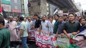 গাজা ও রাফায় ইসরায়েলের নৃশংস গণহত্যার প্রতিবাদ এবং নির্যাতনের শিকার ফিলিস্তিনিদের প্রতি সংহতি জানিয়ে বাংলাদেশ জাতীয়তাবাদী যুবদলের আয়োজিত প্রতিবাদ সমাবেশ ও সংহতি র্যালি