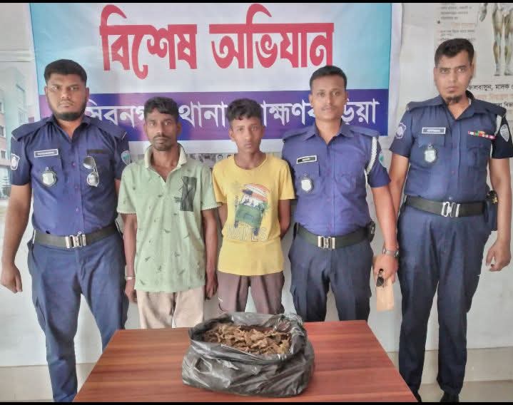 শনিবার ১৯ এপ্রিল ২০২৫ খ্রিঃ গোপন সংবাদের ভিত্তিতে নাসিরনগর থানার এসআই(নিঃ)/শ্রী সুনীল চন্দ্র সূত্রধর, এএসআই(নিঃ)/মোঃ খোরশেদ আলম সঙ্গীয় ফোর্স সহ নিয়ে রাত অনুমান ২২.৩৫ ঘটিকার সময় নাসিরনগর থানাধীন নাসিরনগর সদর আনন্দপুর ব্রিজের সামনে পাঁকা রাস্তা উপর হতে ১ (এক) কেজি গাঁজা সহ হবিগঞ্জ জেলার মাধবপুর থানার গঙ্গানগর ঋষি পাড়ার মৃত বিবেক ঋষির ছেলে ১। লিটন ঋষি (৩৩) ও ব্রাহ্মণবাড়িয়া জেলার নাসিরনগর সদর আনন্দপুর গ্রামের কাউসার মিয়ার ছেলে ২। মোঃ নাজমুল ইসলাম (১৭) কে গ্রেফতার করা হয়। ধৃত আসামীদের বিরুদ্ধে নিয়মিত ধারায় মামলা রুজু করে জেল হাজতে প্রেরণ করা হয়।