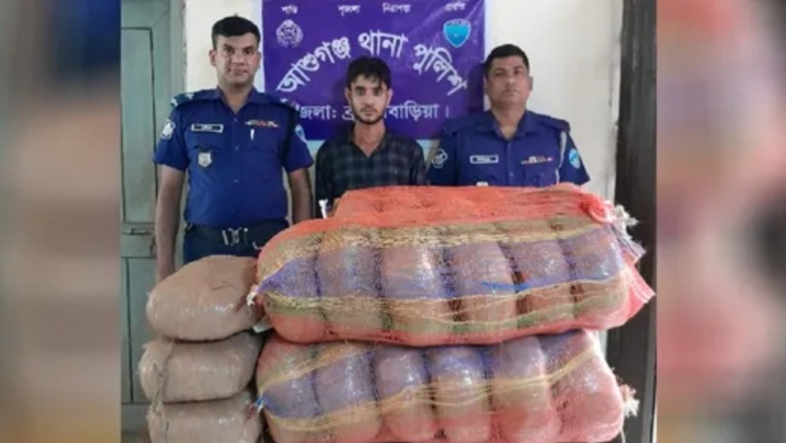 আশুগঞ্জ থানার ভারপ্রাপ্ত কর্মকর্তা (ওসি) মো. খাইরুল আলম জানান, গোপন সংবাদের ভিত্তিতে সকাল সাড়ে ৬টার দিকে টোলপ্লাজা এলাকায় চেকপোস্ট বসিয়ে একটি পিকআপ ভ্যানে তল্লাশি চালানো হয়। এতে পিকআপটির গোপন চেম্বার থেকে ৮৭ কেজি গাঁজা উদ্ধার করা হয়।