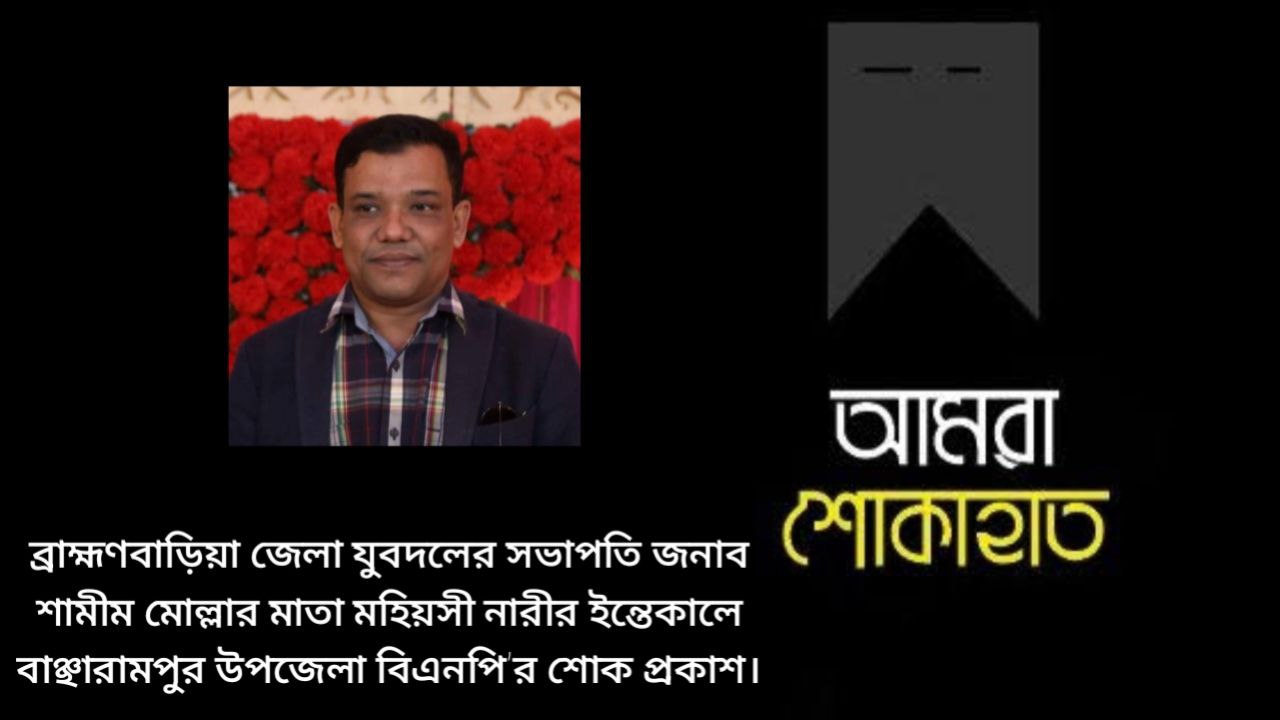 ব্রাহ্মণবাড়িয়া জেলা যুবদলের সভাপতি ও কারা নির্যাতিত সৎ ও সাহসী নেতা জনাব শামীম মোল্লার প্রিয় মা জননীর ইন্তেকালে গভীর শোক ও সমবেদনা জানিয়েছে বাঞ্ছারামপুর উপজেলা বিএনপি।