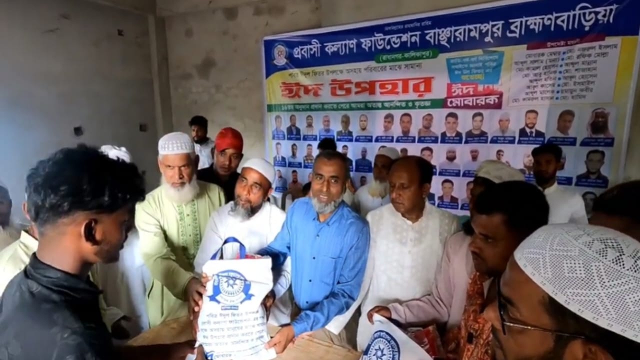 নিজস্ব প্রতিবেদক, বাঞ্ছারামপুর (ব্রাহ্মণবাড়িয়া): পবিত্র ঈদুল ফিতরের আনন্দ ভাগাভাগি করে নিতে অসহায় ও দুস্থ মানুষের পাশে দাঁড়িয়েছে ‘প্রবাসী কল্যাণ ফাউন্ডেশন’। ব্রাহ্মণবাড়িয়ার বাঞ্ছারামপুর উপজেলার উজানচর ইউনিয়নের রাধানগর ও কালিকাপুর এলাকায় আজ বুধবার বিকেলে সংগঠনের পক্ষ থেকে ৩০০টি পরিবারের মাঝে ঈদ উপহার সামগ্রী বিতরণ করা হয়েছে।