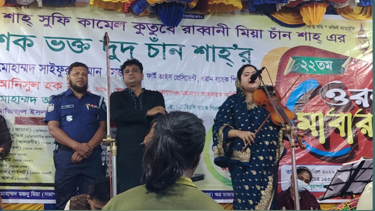 বাউল জলসা অংশে সংগীত পরিবেশন করে হায়দার (সাধারণ সম্পাদক) ও মোহাম্মদ নূরুজ্জামান মিয়া (ক্যাশিয়ার), অত্র মাজার কমিটি।