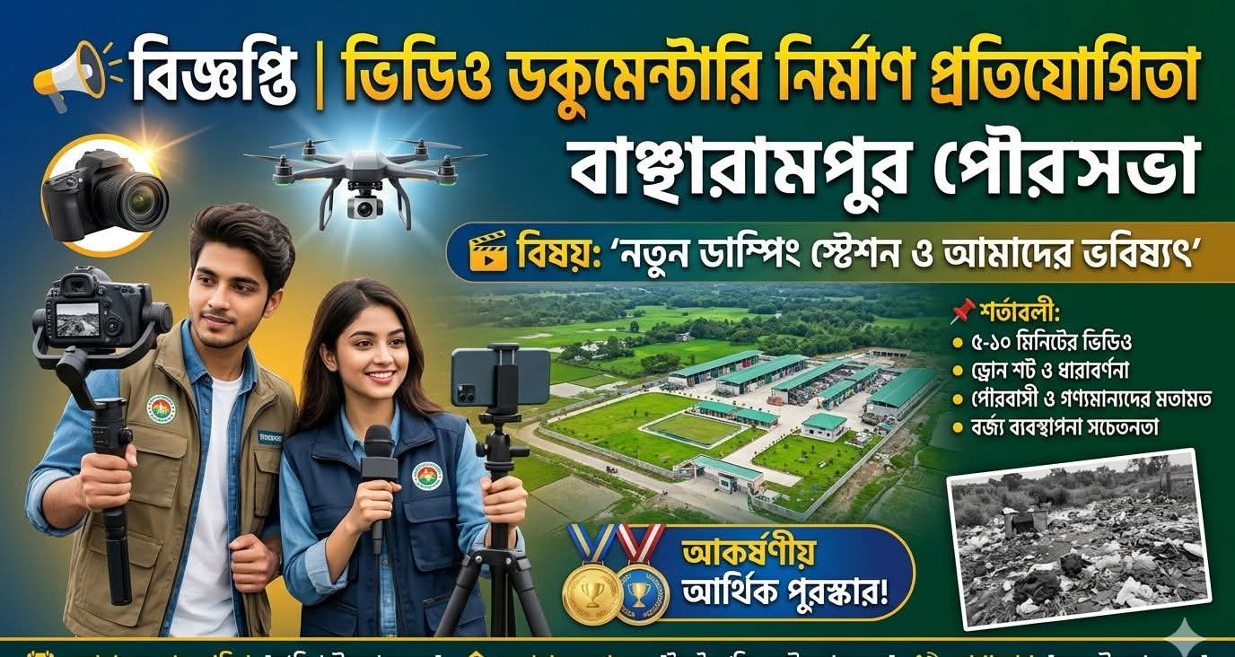 পরিচ্ছন্ন ও আধুনিক নগরী গড়ার প্রত্যয়ে এক ব্যতিক্রমী উদ্যোগ গ্রহণ করেছে ব্রাহ্মণবাড়িয়ার বাঞ্ছারামপুর পৌরসভা। নবনির্মিত ডাম্পিং স্টেশনকে কেন্দ্র করে এবং বর্জ্য ব্যবস্থাপনায় জনসচেতনতা বৃদ্ধিতে স্থানীয় সৃজনশীল নির্মাতাদের জন্য একটি ভিডিও ডকুমেন্টারি নির্মাণ প্রতিযোগিতার আয়োজন করা হয়েছে।