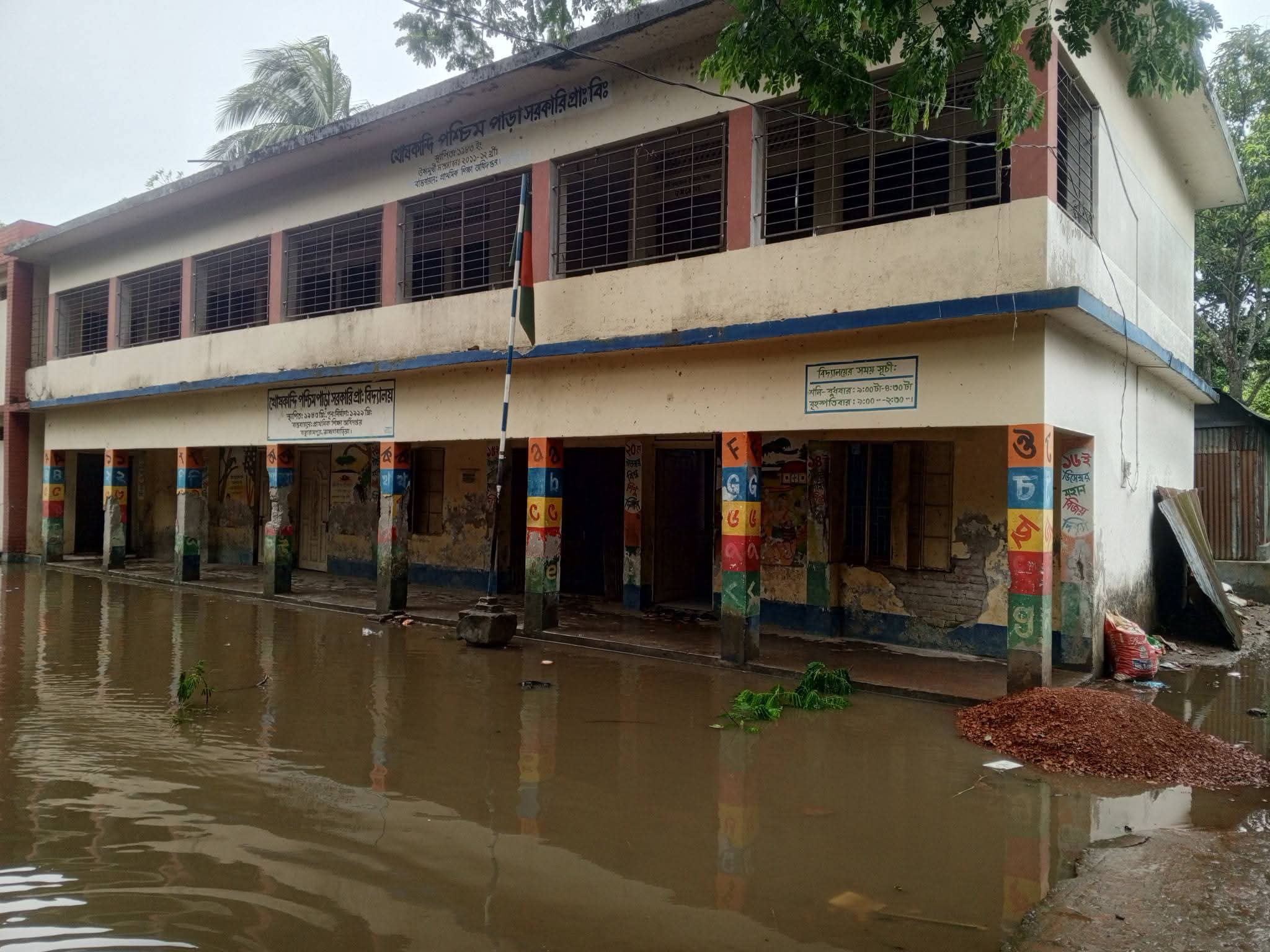ব্রাহ্মণবাড়িয়া/বাঞ্ছারামপুর (প্রযোজ্য এলাকা): টানা আট থেকে দশ বছর ধরে সামান্য বৃষ্টিতেই তলিয়ে যায় খেলার মাঠ। বিদ্যালয়ের বারান্দা পর্যন্ত উঠে আসে পানি। এই চিত্র ব্রাহ্মণবাড়িয়া জেলার বাঞ্ছারামপুর উপজেলার খোষকান্দি পশ্চিম পাড়া সরকারি প্রাথমিক বিদ্যালয়ের। দীর্ঘ এক দশকের এই চরম ভোগান্তি এখন বিদ্যালয়টির ছাত্র-ছাত্রী, শিক্ষক এবং স্থানীয় জনসাধারণের জন্য নিত্যদিনের দুঃস্বপ্নে পরিণত হয়েছে।
