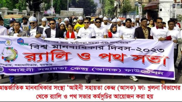 মোঃ সাবিউদ্দিন: খুলনায় বিভিন্ন কর্মসূচির মধ্য দিয়ে বিশ্ব মানবাধিকার দিবস পালিত হয়েছে। দিবসটি উপলক্ষে জাতিসংঘ নিবন্ধিত আন্তর্জাতিক মানবাধিকার সংস্থা ‘আইনী সহায়তা কেন্দ্র (আসক) ফাউন্ডেশন খুলনা বিভাগীয় কমিটির উদ্যোগে র্যালি ও