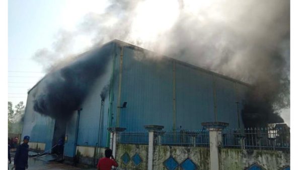 মাধবপুরে স্টার সিরামিক গুদামে আগুন